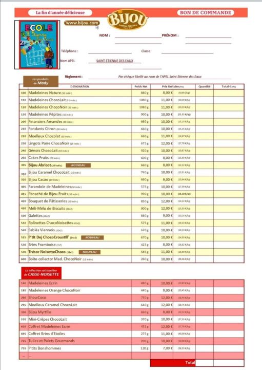 Vous trouverez le bon de commande dans le cartable de vos enfants.